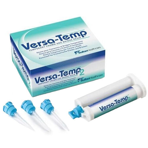 Versa-Temp 2 combines the superb performance and natural-looking aesthetics you want for temporaries that set quickly, handle easily, look great and stay strong until the final crown or bridge arrives. It is a high-strength, high-esthetic temporary resin with a natural fluorescence ideal for both anterior and posterior temporaries. It provides great handling and fast polishing without compromising on strength and speed.